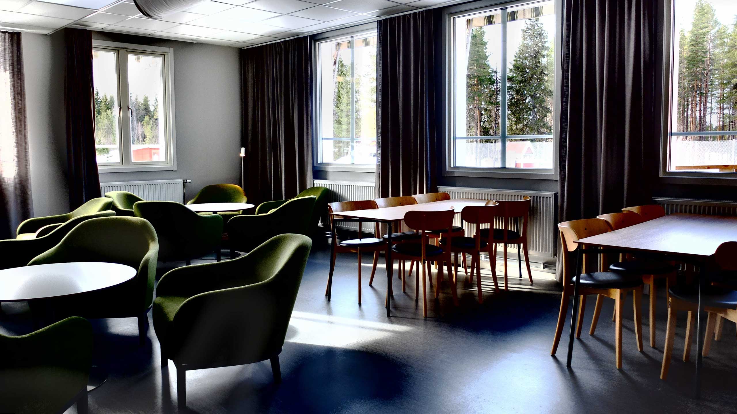 Slagnäsforsens Lodge är byns tidigare skolbyggnad och har idag 16 nybyggda singelrum med hotellrumsstandard.