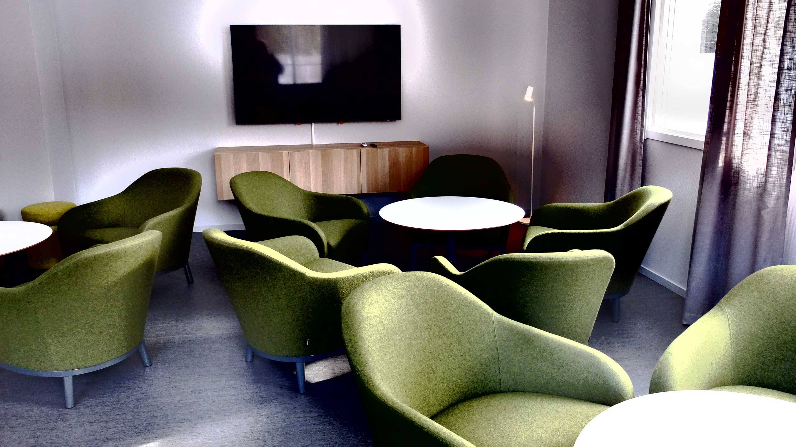 – uppehållsrum med tv